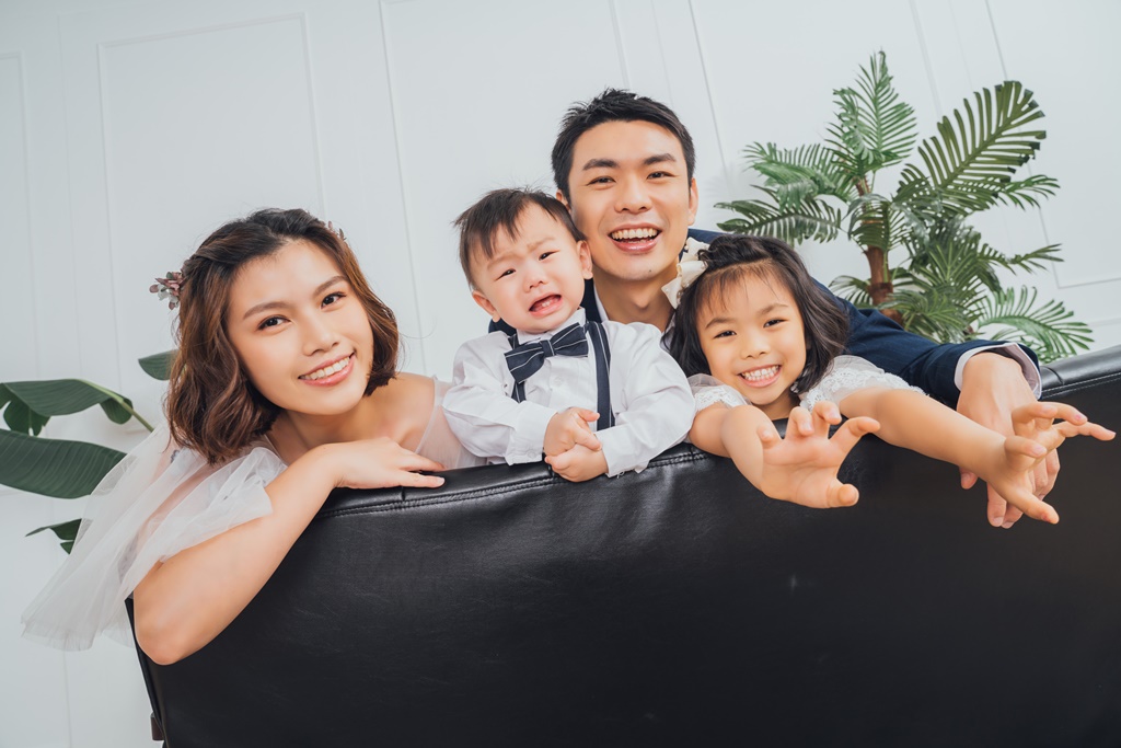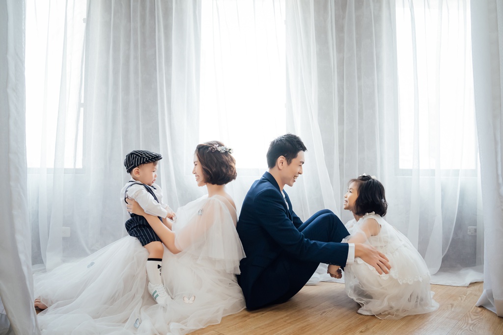 大家都知道拍全家福照,小孩的狀況真的是無法掌握的,一下太開心一下又不想拍!攝影師阿勤真的很強,一開始就和他們打好關係,最後還成為好朋友呢!攝影師及助理還會在拍攝中變出超多道具來吸引他們的注意力,果然有玩具兩位小朋友都超開心!當然還有我們的造型師,超會照顧小孩,在我和老公拍照的時候,幫我們把小孩照顧的超好,真的是超感謝伊頓的攝影團隊,每一張照片出來的時候,真的都比我預期的還好看!