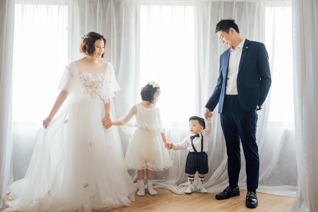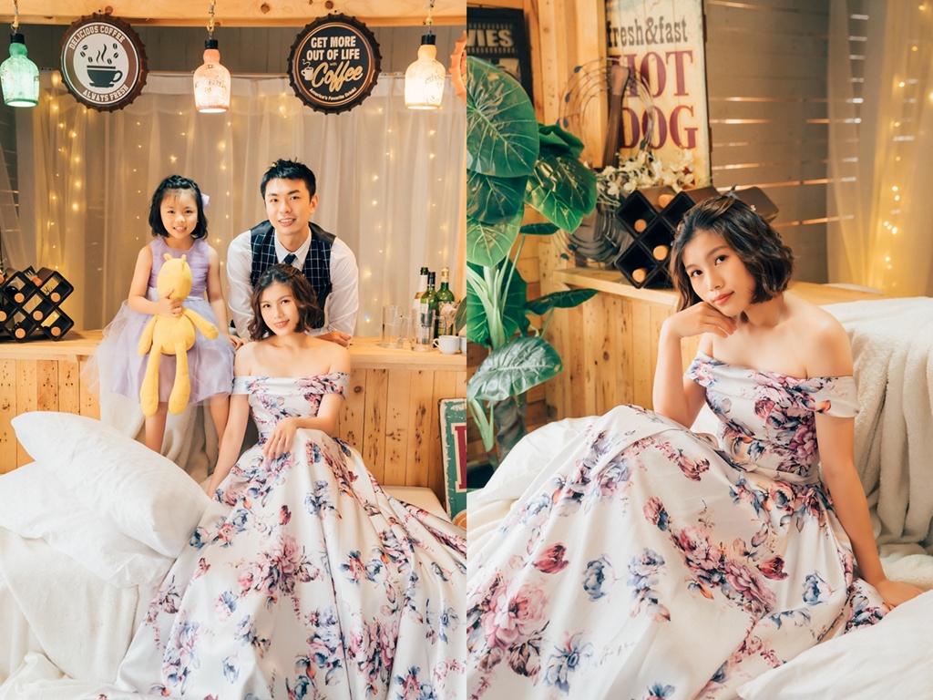 當初一收到全家福照的時候,真的超興奮!馬上跟親朋好友分享,大家都說超好看!趁著和老公結婚六周年的日子來拍全家福,真的好有意義~之前在伊頓自助婚紗選的這套白紗,沒想到拍起來真的好好看~尤其是可以遮擋最在意的手臂,而且禮服好夢幻,不論怎麼拍都好看呀!伊頓自助婚紗的禮服都可以任選喔!甚至連新款也都可以挑選,完全不需要額外加價,只有分為拍照款及宴客款~根本超佛心,價格親民之外,拍出來的品質都很高規格呢!