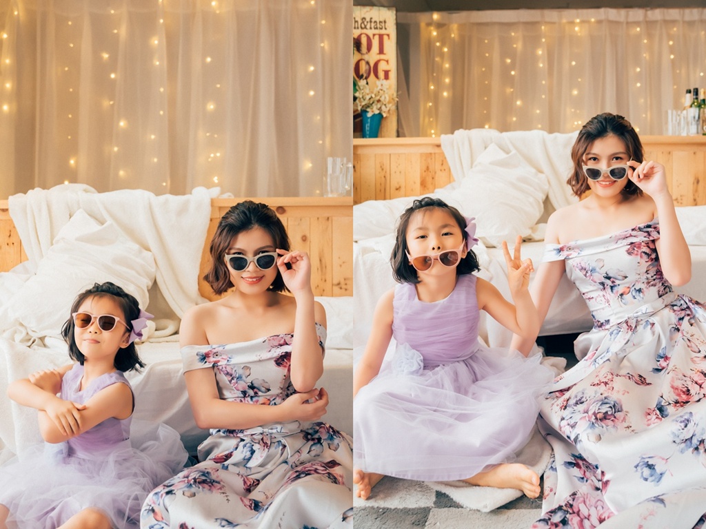 母女合照一定也要來幾張酷酷的!我們還特定準備了墨鏡來拍攝,是不是超可愛~像這樣的全家福照風格,也好好看!把平時在家和孩子們的互動,也記錄起來,看看我們饅頭玩的多開心。