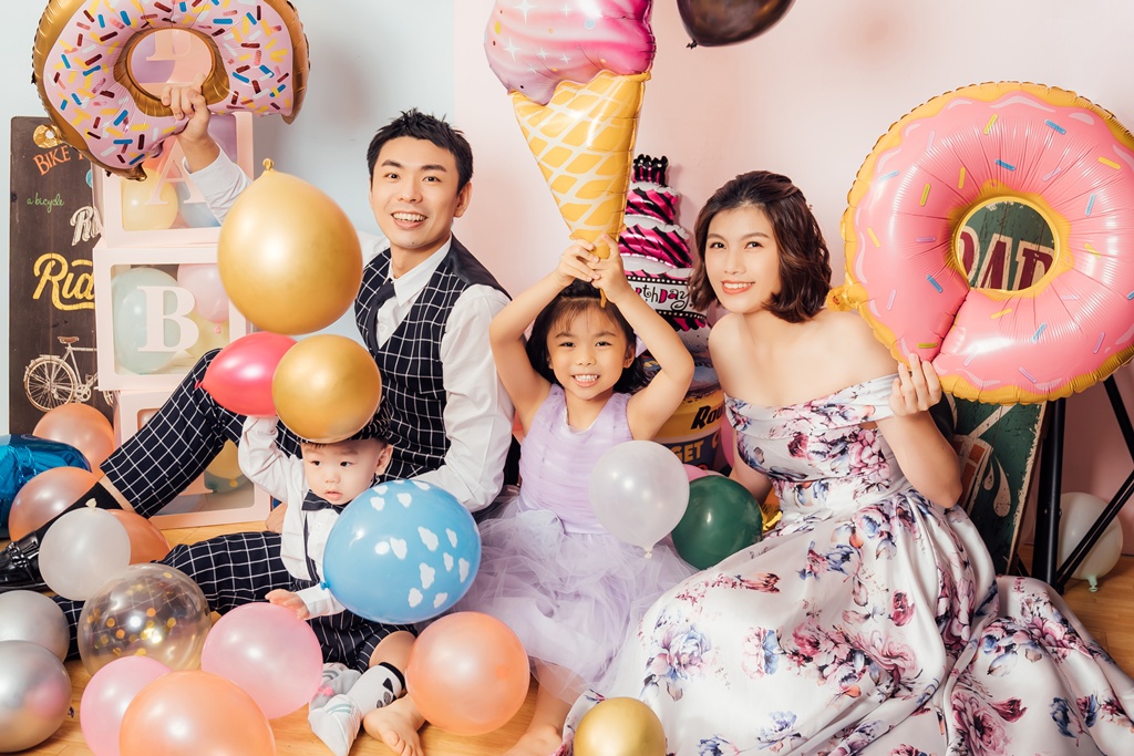 這風格的全家福照好繽紛~攝影師用不同顔色的氣球道具,小孩看到根本超興奮啊!兩位小孩都玩的超開心,像是這樣的繽紛道具,拍出來的全家福照真的好歡樂呢!而且好好看~