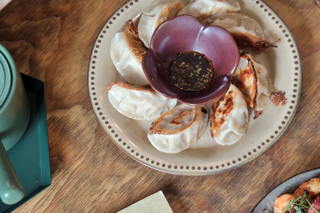 煎餃一直都是微生咖啡的招牌餐點,印象中多年前不是這個口味,中間應該有改過,微微焦脆的外皮口感很不錯,內餡算是蠻飽滿多汁,帶有馬告獨特的檸檬香氣,爽口的風味可以降低煎餃的油膩感~