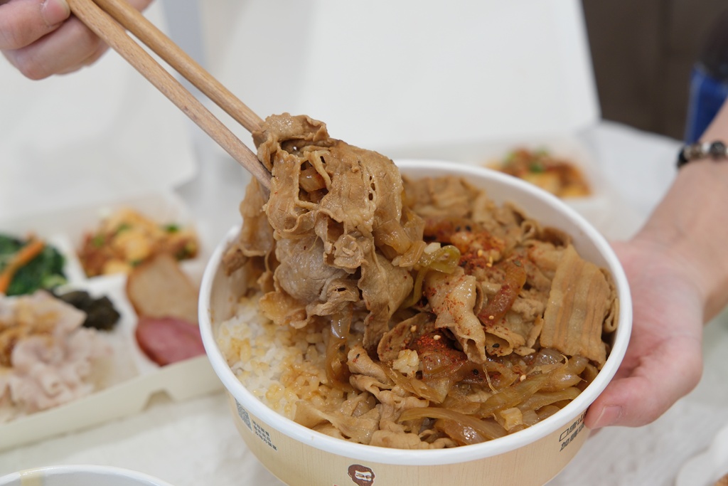這次最主要就是想試試看這款新品!選用鬍鬚張特製的醬料,搭配油脂分布均勻的豬肉片與新鮮洋蔥一同熬煮,口味鹹中帶甜,可撒上「七味唐辛子」,香香辣辣的更提味,根本是白飯殺手!最讓我驚艷的是肉片份量很多,多到完全看不到飯,而且每一片肉都很厚實,不是碎肉片那種~和吉野家、SUKIYA 相比,整體份量實在許多,價格也是完全打趴!