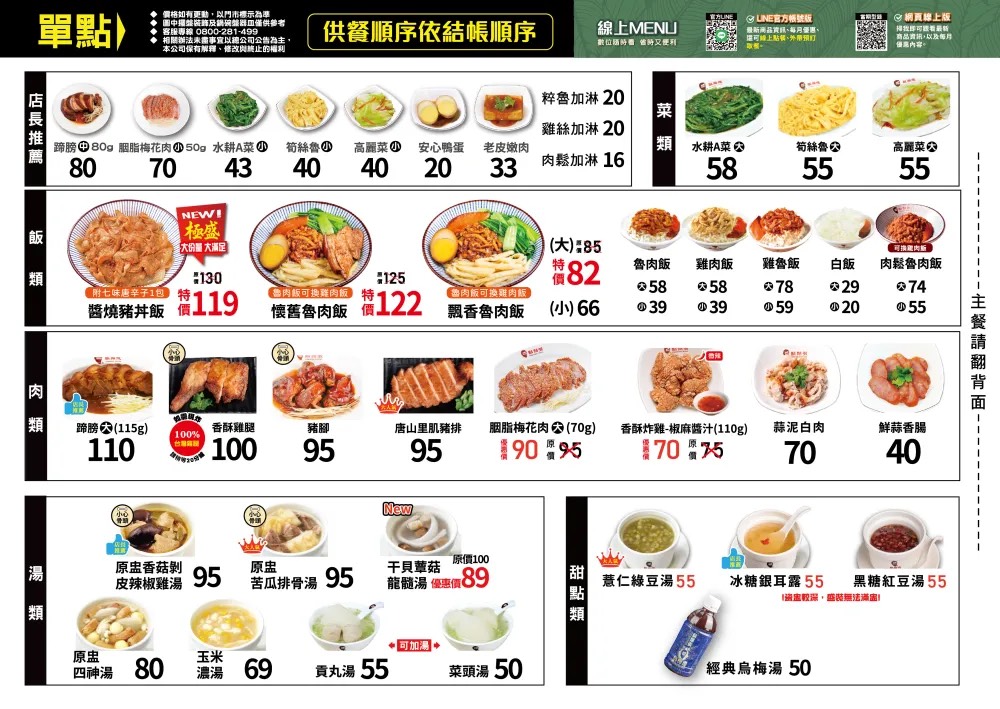從主餐、便當、湯品和甜點應有盡有,無論外帶或內用,都能享用豐盛的一餐!