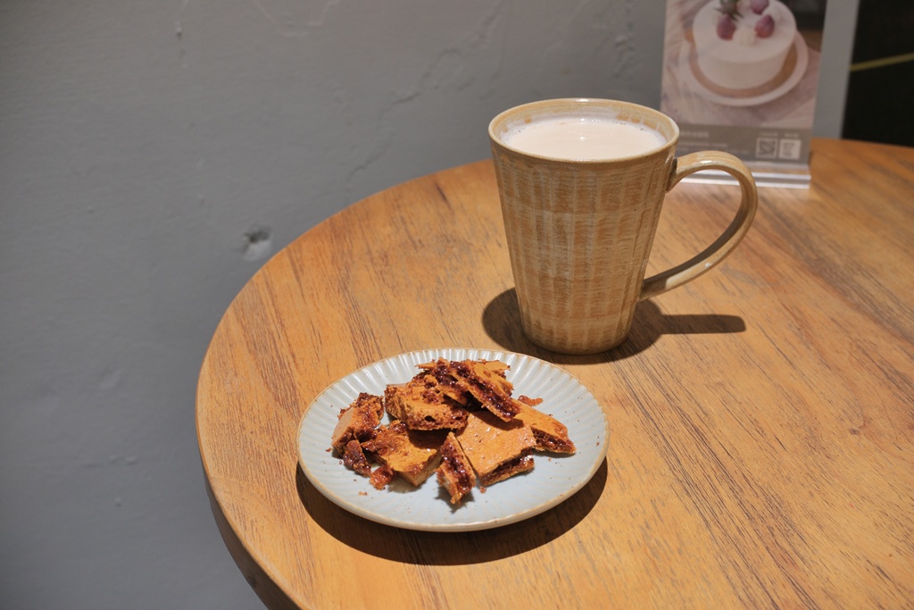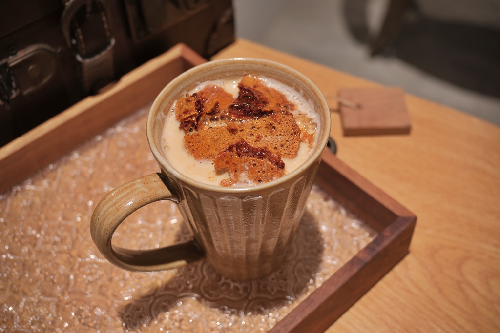 基底是無糖的紅茶拿鐵,椪糖則是另外附上,讓我們可依照喜好調整甜度,還蠻貼心的!椪糖融入在紅茶拿鐵之中,香氣超迷人的,我覺得很好喝,而且價格好佛呀~