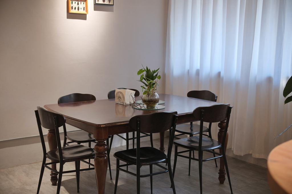 店內環境以老宅改建而成,微微復古的桌椅搭配綠植與鐵窗花元素,空間不大但舒服自在~