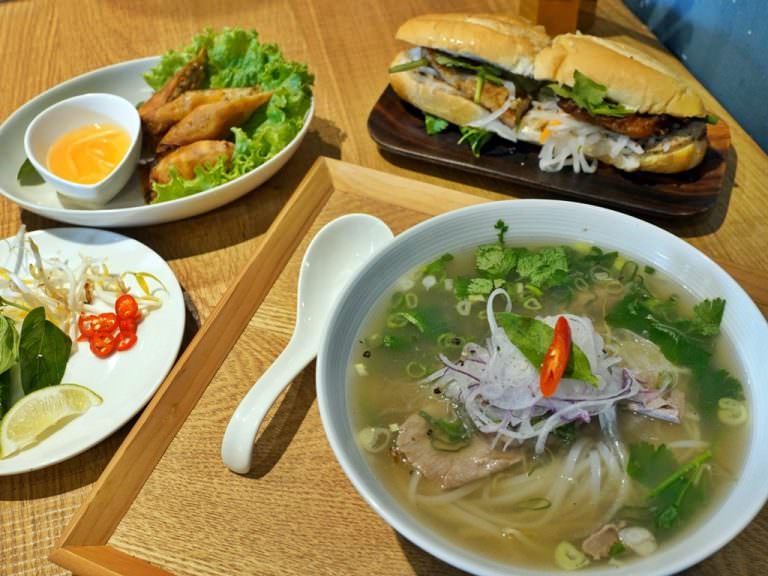 那天終於跟朋友相約去吃已經開好一陣子的「金福越式河粉」,店家 11:30 營業,我 11:17 到餐廳發現已經有人在門口等,越接近營業時間人越多,我整個驚呆耶,想說已經開蠻久的,竟然還要排隊…可見金福越式河粉的魅力不容小覷呀!我覺得整體餐點口味還行,特別推薦越式班密火腿麵包,法國麵包的酥脆度剛剛好且不刮口,餡料也很豐富,最棒的是內用有泰奶跟檸檬汁喝到飽!