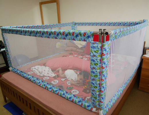 現在小孩發育特別快,總是會在一個不留神就會翻、會爬甚至會走 雖然我們家饅頭還停留在會翻身而已,但她很會翻~ 所以早在她會翻身的時候,就立刻裝了床上圍欄,也可直接移到地墊使用…