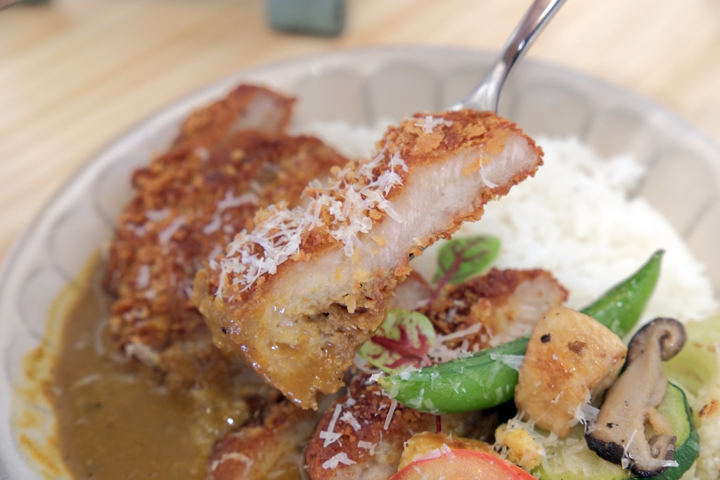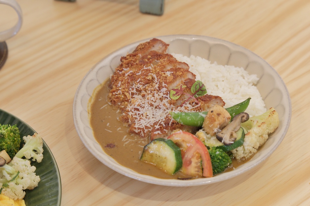 咖哩飯是日式風味、帶點微辣,豬排口感蠻不錯的,搭配爽口的時蔬,整體豐富實在!